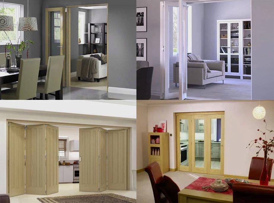 Folding bi-fold doors, or accordion doors, open by folding to the side. This is especially convenient in spaces where saving space is important. Folding doors can be used to divide large spaces into smaller zones while creating a sense of openness.