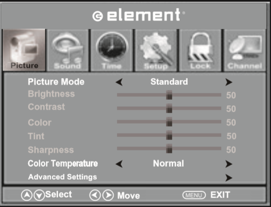 Using your Element TV's picture modes and presets can quickly improve the accuracy of the colours. You can change the picture style to Standard, Cinema, or Vivid by viewing the TV's settings.