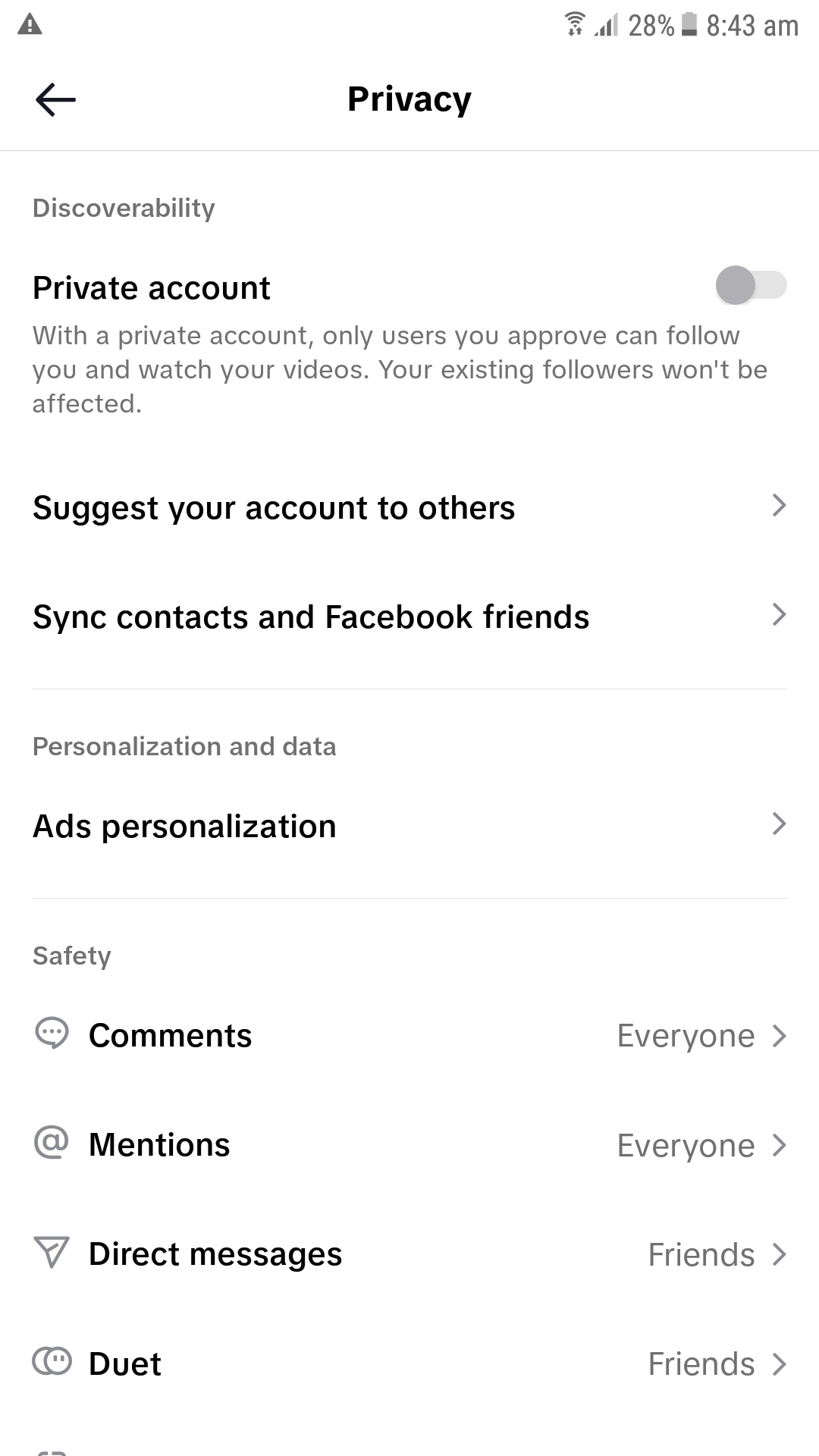 From there, toggle the "Private Account" option on. This will restrict your content to only users you approve of following you.